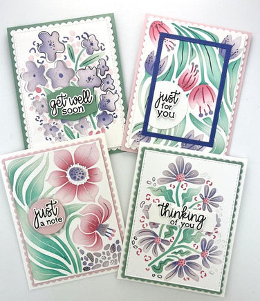 Create four beautiful floral panels at once with the Create in Quad- Poster Prints stencils! This set has four layers that can be easily ink blended and layered using the alignment guides. Its bold floral images can be used for a myriad of occasions!