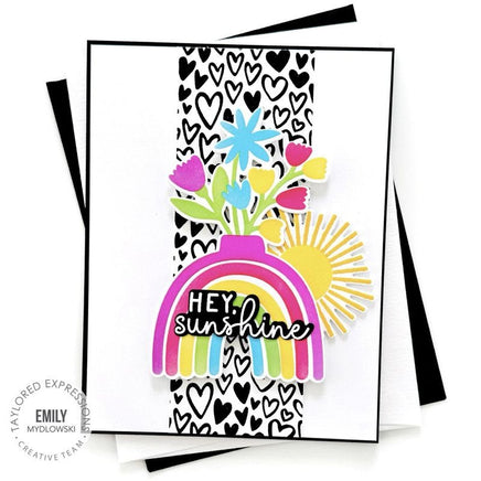 Create-in-Quads - ROYGBIV Vase coordinates with the Create-in-Quads - ROYGBIV to create an endearing rainbow vase! This die cuts the panel of Quad, furthering your options for creative uses! Consider using foam tape to put it atop the panel with the bitty rainbows for starters. So many possibilities at the end of the rainbow!