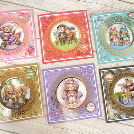 The Golden Oldies Decoupage Card Kit is perfect for putting a smile on any recipient's face, featuring gorgeous artwork of Hunkydory's beloved ‘oldies’ in different humorous scenes; riding a motorbike and scooter, getting pampered, having tea and cake, in love, and having a pint with a friend. The collection makes 12 concept cards in total, with incredible layered up decoupage topper designs all finished beautifully with a super special gold foiled frame.