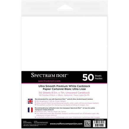 CRAFTER'S COMPANION-Ultra Smooth Premium White Cardstock. This cardstock features an ultra-smooth finish that is ideal for use with any alcohol-based marker-- perfect for stamping or digital printing of images. Each sheet measures 8-1/2x11 inches, is 100-lb cover weight, and has 100 Brightness. This package contains fifty sheets. Imported.