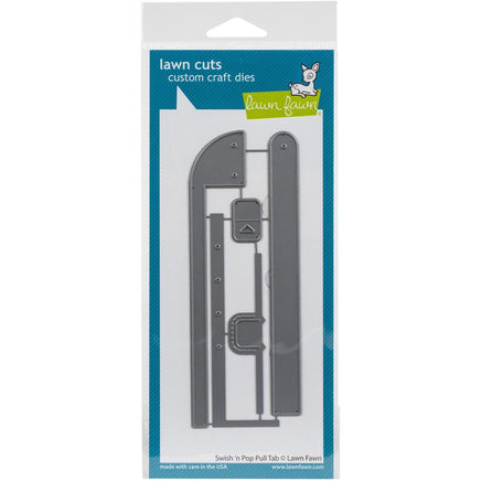 Lawn Fawn custom craft dies are made of 100% high-quality steel, compatible with most die-cutting machines, and will inspire you to create cute crafts! This package contains Swish 'n Pop Pull Tab, five dies. WARNING: Choking Hazard- small parts. Not for children under 3 years. Made in the USA.