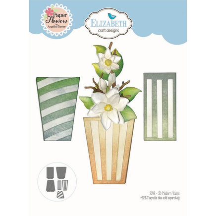 The 3D Modern Vases Die Set is part of the Spring Blossom Collection from Paper Flowers. This versatile set includes three vases, each featuring a decorative overlay for added dimension and design possibilities. These modern vases provide the perfect base for your flowers. Mix and match colors, textures, and explore mixed media techniques to bring your projects to life with endless design options. This set includes 6 thin metal dies, with the largest measuring approximately 2.7 x 3.1 (6.9 x 7.9 cm).