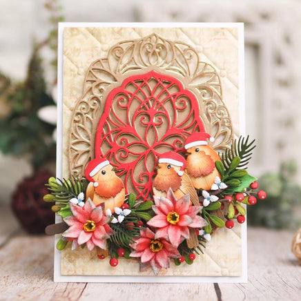 The Festive Ornament Frame Die Set is part of the Festive Holly Collection from Paper Flowers. This decorative frame set is perfect for adding elegant layers, creating stunning backgrounds, or making bases for eye-catching focal points. Its size also allows you to create beautiful layered card bases. With intricate lacy details, these frames bring depth and elegance to any project. This set includes 4 thin metal dies, with the largest measuring approximately 5.3 x 7.2 (13.1 x 18.2 cm).