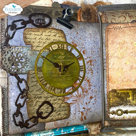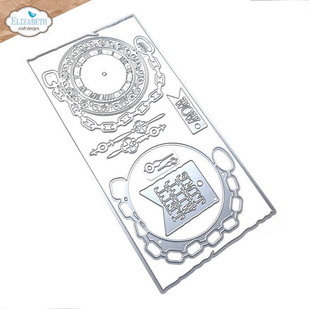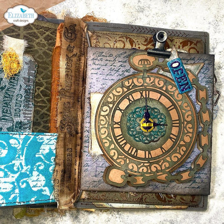 The Gentlemans Timepiece Die Set is part of the Mr. & Mrs. Collection from Art Journal Specials. This set allows you to cut a base page that fits the Square XL Journal, and layered elements to build a decorative timepiece. These decorative dies are so much fun they will be a staple in your collection for year-round creativity! This set includes 7 thin metal dies, with the largest measuring approximately 10inX 5.1in