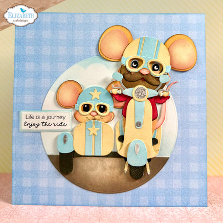 The 'Scooter with Sidecard' Die Set' is part of the Good Times Collection from Cute & Whimsical. Designed to work with both the Big Mouse (2203) and the Little Mouse (2204) from the Meet the Mice Collection. This set includes layered dies to build a scooter, helmets, and elements like beards and moustaches. Perfect for creating fun scenes with your mice. This set includes 24 thin metal dies; the largest die is approximately 2.3" x 3.9" (5.8 x 9.9 cm)