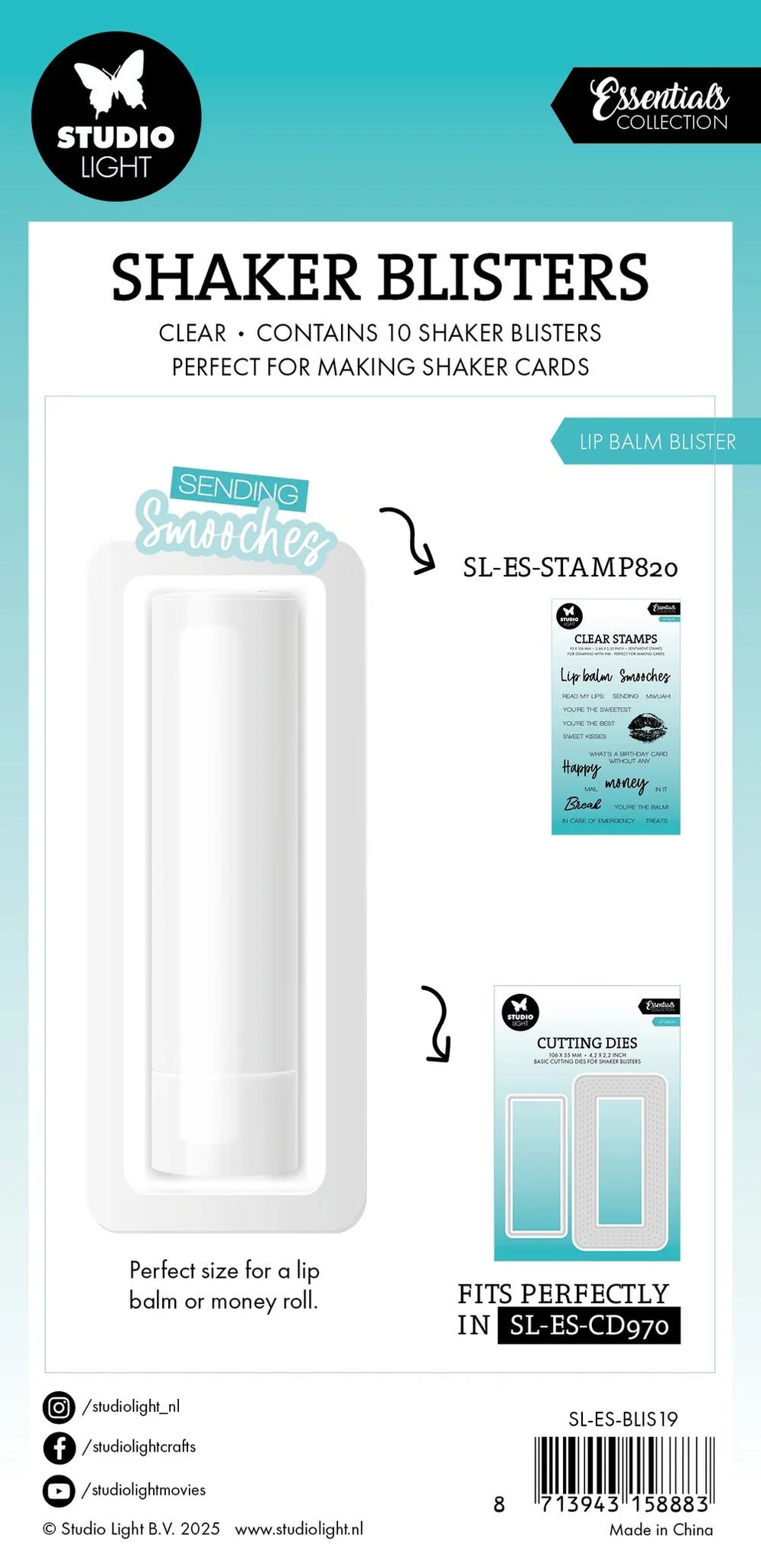 Unlock your creativity with this set. This clear Shaker Blister Lip Balm Essentials set will be perfect for making shaker cards. Combine with the Lip Balm Blister cutting die SL-ES-CD970. 10 pcs.