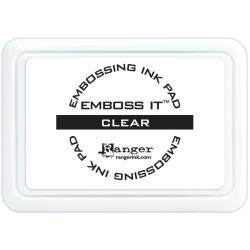 RANGER-Emboss It Clear Ink (pad). Specially developed embossing ink stays wet for an extended period of time to allow you to stamp/prepare your design, sprinkle your embossing powder on the wet ink, tap off the excess, then heat emboss with the appropriate tool. Acid free. Loaded Pad is approximately 3x2 inches with a removable lid. One-ounce re-inker available (sold separately).