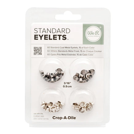 Let your imagination run wild with these eyelets! They're perfect for paper crafting, scrapbooking, school, office, or home projects. These eyelets have long necks with a fluted tip designed for use on thin paper, thick board, and everything in between. This package contains sixty 1/3 inch eyelets (15 each of 4 colors). Available in a variety of color combinations: each sold separately. Use these eyelets with the Crop-A-Dile Tool on setting A1 (tool sold separately). Imported.