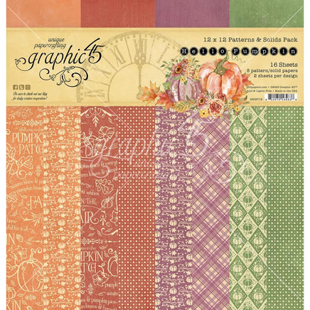Introducing the vibrant and enchanting Hello Pumpkin collection by Graphic 45! Dive into the mesmerizing hues of fall, where the rich purples, warm oranges, and lively greens embrace the spirit of autumn. Get ready to immerse yourself in a world filled with whimsical pumpkins, captivating designs, and endless creative possibilities. Explore the essence of the season and bring your projects to life with this stunning paper collection. Fall in love with Hello Pumpkin and let your imagination soar! This package contains one 12x12 inch patterns and solids pack. Made in USA.