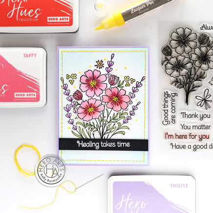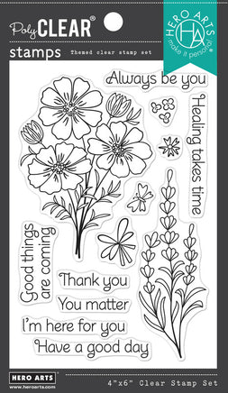 Hero Arts 4" x 6" clear stamp sets offer the best quality in the market. They are made in the USA from genuine photopolymer, which is non-toxic, biodegradable, and beautifully transfers ink to paper for a true impression every time. Peel the stamp from its backing and stick to an acrylic block for easy positioning. Mix and match the designs. Cleans up easily with water or stamp cleaner.