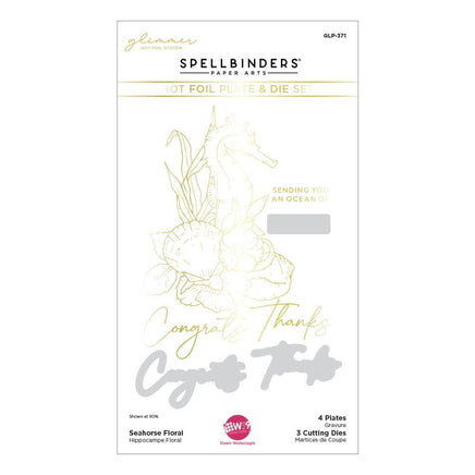 The largest hot foil plate is a magnificent seahorse perched in a bed of floral and seashells. There are three sentiment plates, and all have coordinating thin metal cutting dies. Seahorse Kisses is a debut collection by designer Dawn Woleslagle with Spellbinders! This wonderful offering of hot foil plates, dies, stamps and even a 3D embossing folder encompasses around the beautiful seahorse. A symbol of strength, persistence, and peace, it is a stunning and unique collection to enhance your card creations and beyond! Glimmer Hot Foil Plates add stunning foil features to any project from cards to mixed media and more. They are designed to be used with the Spellbinders Glimmer Hot Foil System (or other compatible hot foil system). This package contains 4 plates between 1.30x0.30 inches to 3.50x4.60 inches and 3 dies between 1.40x0.45 inches and 2.50x1.30 inches. Imported.