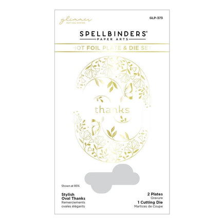 With its two hot foil plates, it creates a lovely floral oval frame and, in its center, a simple thanks. Use the die to cut the sentiment to stand out even more! Use alone or pair the set with S5-562 Essential Stylish Ovals Etched Dies (sold separately). limmer Hot Foil Plates add stunning foil features to any project from cards to mixed media and more. They are designed to be used with the Spellbinders Glimmer Hot Foil System (or other compatible hot foil system). Foiled Elements can also be added to various materials and thicknesses with your Platinum Die Cutting & Embossing machine and more. This package contains Stylish Oval Thanks part of the Stylish Ovals Collection: a set of 3 hot foil plates measuring between 2.35x1.35 inches and 3.40x4.50 inches. Imported.