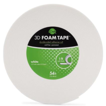 3D Foam tape roll is ideal for shaker cards and anywhere you need extra dimension. Perfect for assembling layered cards, scrapbook pages and for popping up sentiments and photos. Color: White. Measures 54 feet x 1/2 inch wide x 1/8 inch thick. Made in the USA.