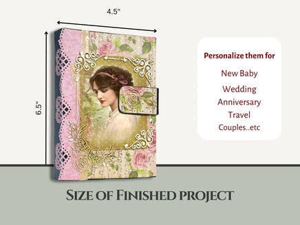 Create two beautiful Double Folio 6.5” x 4.5” scrapbooks effortlessly! Looking to dive into scrapbooking without the stress of cutting, scoring, and assembling? This Junk Journal Scrapbooking Kit makes 2 albums and makes the process easy and fun! Save time and focus on the creative side, personalizing your scrapbook albums with any theme you love—whether it’s for a couple, baby, wedding, birthday, anniversary or vacation scrapbook.