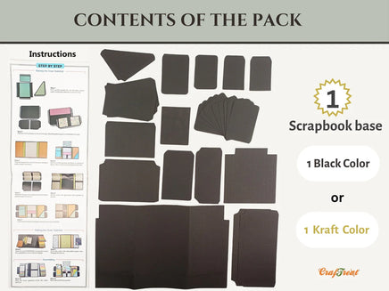Create a beautiful black color Gate Fold Folio 8.5” x 6.5” scrapbook effortlessly! Looking to dive into scrapbooking without the stress of cutting, scoring, and assembling? This Junk Journal Scrapbooking Kit makes 1 album and makes the process easy and fun! Save time and focus on the creative side, personalizing your scrapbook albums with any theme you love—whether it’s for a couple, baby, wedding, birthday, anniversary or vacation scrapbook.
