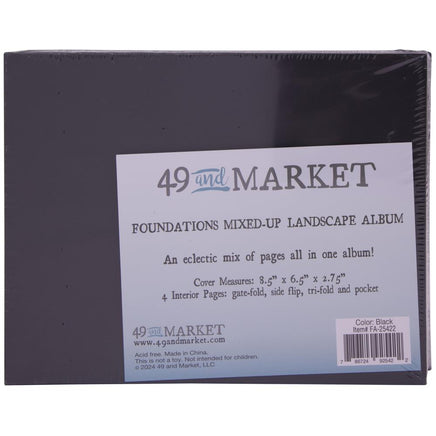 The Foundations Mixed Up Landscape Album in Black is a blank album with 4 assorted pages that are made for creating! Outside measures: 8.5 x 6.5 x 2.75 inches. Includes 4 assorted pages each spaced 0.5 inch apart for room to add embellishments. Page assortments include: 1 gatefold; 1 side flip page; 1 vertical tri-flip page and 1 pocket page.