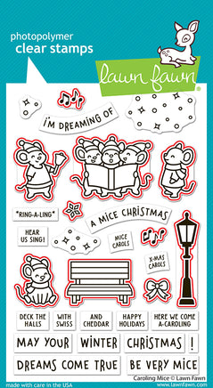 Coordinating stamp set: Caroling Mice This set has 9 pieces. Lawn Cuts custom craft dies are high-quality steel and are compatible with most die cutting machines!