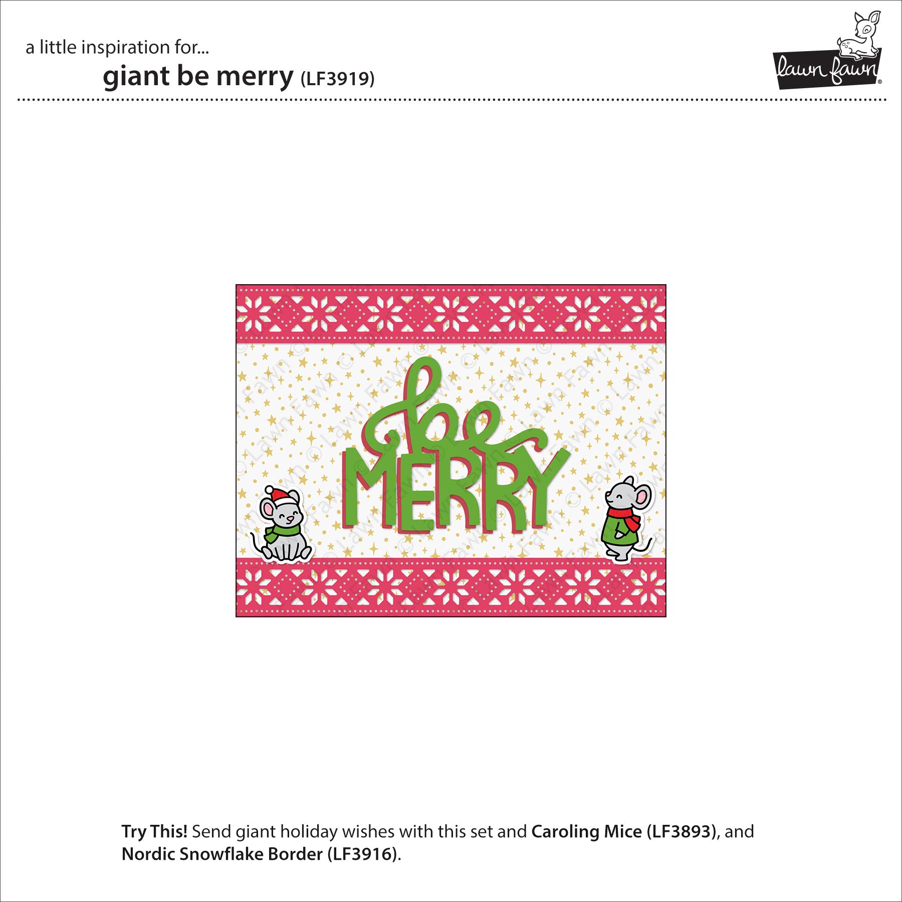 Send big holiday cheery with this giant sentiment! This die fits a standard sized card. Use a fun cardstock color or patterned paper to cut out this sentiment and adhere it to a white cardstock card base for a clean and simple (and quick) card! For more giant greetings, check out the Giant Sentiments Collection! Lawn Cuts custom craft dies are high-quality steel and are compatible with most die cutting machines!