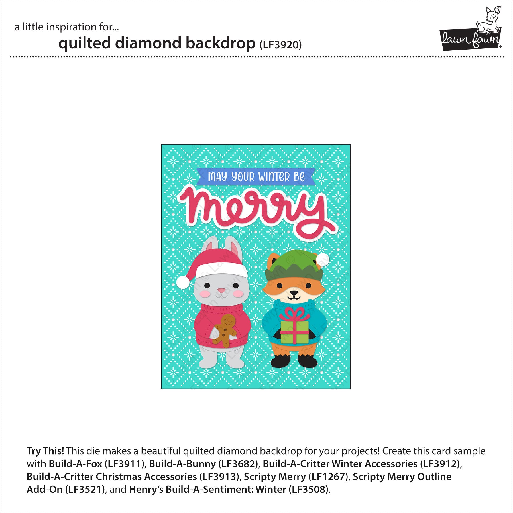 This backdrop creates an elegant, stitched design for a cozy quilted look and fits a standard-sized card! The backdrop works well for portrait and landscape cards and projects. For more awesome backdrop, check out this collection. Lawn Cuts custom craft dies are high-quality steel and are compatible with most die cutting machines!
