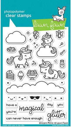 Coordinating set ideas: Pair this set with Winter Dragon to create a cute birthday scene featuring a unicorn and a dragon. Use Build-A-Castle to add a magical castle background! For more clouds (and rainbows!), pair this set with All the Clouds. You can also use Reveal Wheel and Reveal Wheel Unicorn Picnic Add-On to create an interactive card with a smiling cloud!