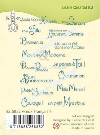 Voeux Francais. Includes "Bienvenue", "Je pense a toi", "Quelle bonne nouvvelle" and more.