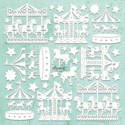 Mintay Chippies are made of 1,55 - 2 mm light chipboard in ecru color. Decors and sets are packed in 12 x 12" bag. Chippies Albums contains 7 pieces (1 openwork cover and 6 blank pages), size of packaging: 6 x 8".