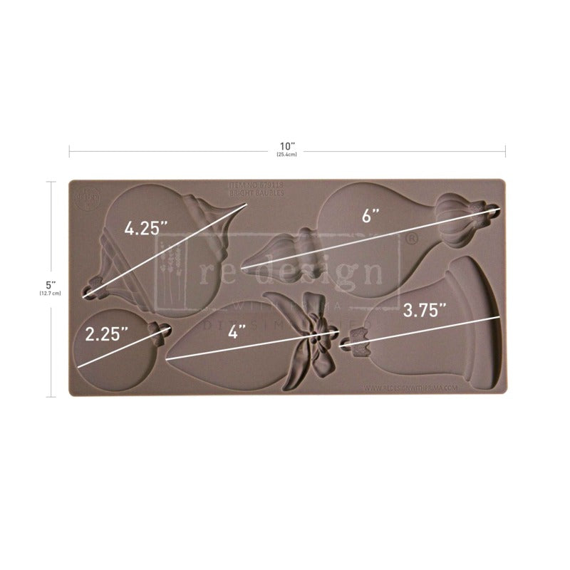 Make your own holiday ornaments from scratch with the Merry & Bright Baubles Decor Mould. This mould includes six festive shapes--bells, classic baubles, and a sweet bow - all designed to be personalized with transfers, glitter, decoupage paper, or clear resin. Add ribbon, paint, or metallic wax for a one-of-a-kind finish that's ready to hang or gift.