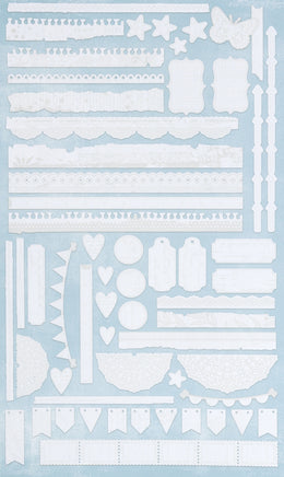 "Unlock hidden artistry in your paper crafting with our Irresistible Die-Cut Borders. These aren't just decorative edges; they are a playground for color and texture. Each border features a specialized resist coating a clear, embossed pattern that remains invisible until you bring it to life with color. How the Magic Works The ""magic"" lies in the interaction between the medium and the treated surface. When you apply water-based inks, sprays, or markers, the ink resists off the pre-designed patterns and settles into the surrounding paper .Reveal the Design: Simply swipe an ink pad or a blending brush over the white cardstock to watch intricate damasks, dots, or floral swirls emerge instantly. Depending on medium used, you may need to use a cloth to wipe excess off (always test a small area first).Custom Color Matching: Because the borders start white, you can customize them to match any project palette exactly. Mixed Media Ready: Experiment with watercolors, alcohol inks, or chalks to create