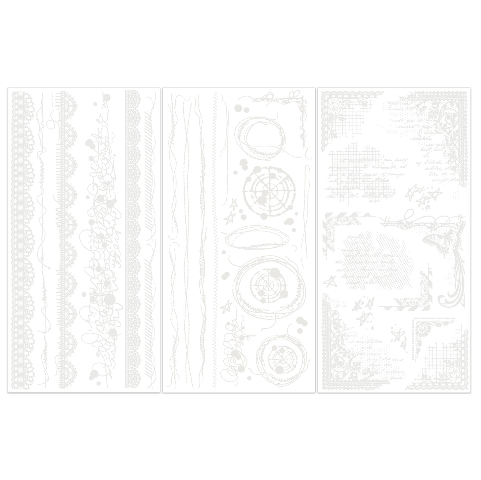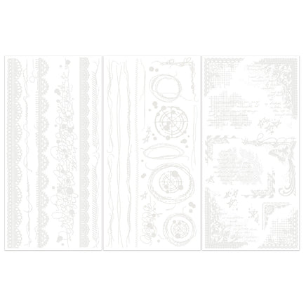 "Elevate your mixed media projects with the Irresistible Edges Rub-on Transfer Set. This collection of crisp, all-white designs is a versatile essential for any crafters toolkit, offering professional-grade precision without the need for heat or messy adhesives. Key Features: Premium Resist Capabilities: Apply these transfers to your surface and layer with inks, stains, or watercolors. The high-quality transfer acts as a permanent barrier, allowing you to create stunning ""resist"" effects where the white design pops through the color. True White Opacity: Unlike standard transfers, these are engineered for maximum pigment. Apply them directly to dark cardstock, chalkboard surfaces, or black wood for a high-contrast look with zero ghosting or transparency. Seamless Integration: The ultra-thin profile ensures your designs look like they were printed directly onto the surface, leaving no bulky edges or ""sticker"" halos.