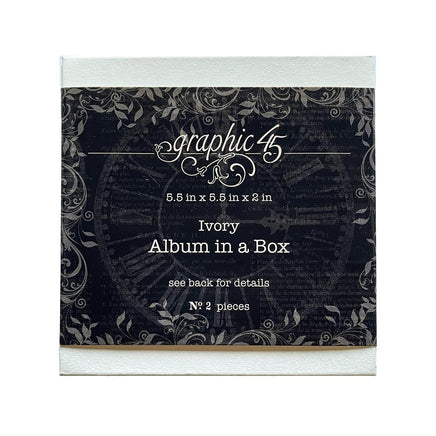 Adhere the album inside the box once you've covered it with your favorite G45 papers and embellishments! Box dimensions 5x5 in x 5.5 in x 2 in Inside Pocket 5.5 in x 3 in Album Insert 5 in x 5 in 16 album pages (featuring: full pocket page, flip-top page, standard pages, and tuck spot pocket pages)