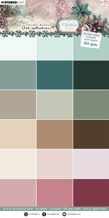 This double-sided unicolor paper pad has 36 sheets with 18 colours, 250gsm. Perfect for Christmas and Winter cards, scrapbooking or journaling projects. Part of Jenine's Mindful Art Collection.