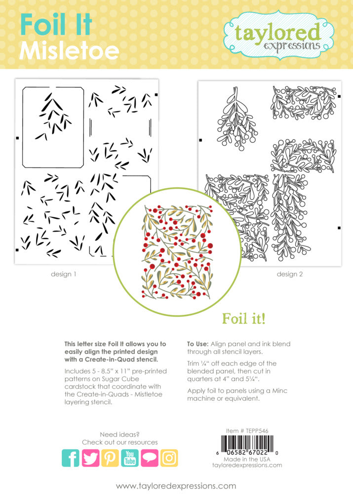Dazzle your card recipients with Foil It - Mistletoe, designed to coordinate with Create-in-Quads Layering Stencil - Mistletoe (sold separately)! Simply choose your favorite TE Fun Foil and send it through your heat source. The panels are toner printed for easy foiling, making the design pop for an extra dose of sparkle in your creations!