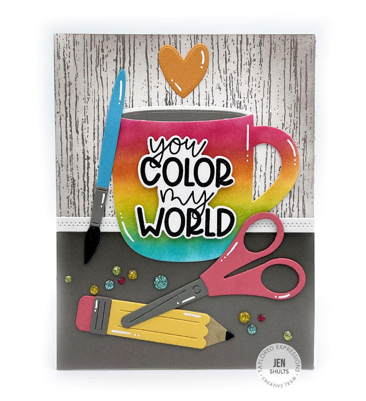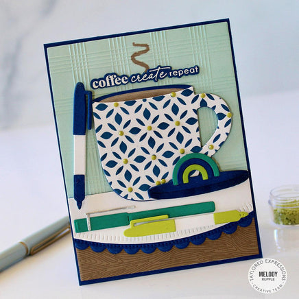 Sip on creativity with the Mugs & Kisses Die & Clear Stamp Combo! This versatile clear stamp and die set lets you create adorable mugs and cups, perfect for holding your tools from the Crafty Tools of the Trade Die Set (sold separately) or adding a cozy touch to your projects. This set also includes a lid, a lid with a handle, and a rainbow arch that can be used in a number of creative ways! The clear stamps fit inside the mug, adding the perfect crafty sentiment to complete your design.