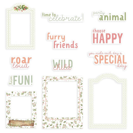 Take your projects to the next level and put the perfect finishing touch with die cut embellishments. They can add dimension and color to your projects. Great for scrapbooks, cards, journals, planners, and so much more. This package contains P13 Woodland Cuties Ephemera Cardstock Die-Cuts, Frames & Words. Set of 12 pieces. Paper weight: 240 gsm.