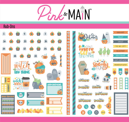 Get spooky-season ready with these fun October planner rub-ons! Pumpkins, witch hats, cauldrons, candy corn, and ghostly skulls add playful Halloween vibes to your calendar pages. Handy icons help you track habits, appointments, goals, and bills. You'll stay organized and festive all month long. Perfect for bullet journals, planners, and scrapbook spreads. Just rub and go - no mess, no fuss!