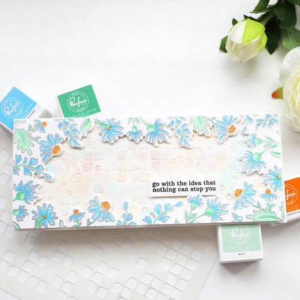 1 piece die set to coordinate with the Daisy Slimline Frame stamp set and Daisy Slimline Frame layering stencil set. Available for purchase separately. This die cuts out the middle of the floral design for added versatility and dimension. It also makes it easy to create a slimline shaker card from the whimsical daisy frame. Approximate measurement: 3.25 x 7 inches.
