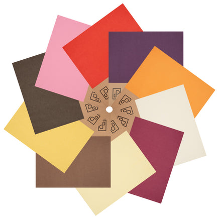 Including passionate reds, deep and velvety purples, glowing yellows, fiery oranges, and earthy terracottas, Prism Studio's "Warm Hues" Multi-Pack contains ten radiant colours from the Whole Spectrum "Canvas" Series, a premium collection of textured 12" x 12" cardstock available in 25 vibrant hues, featuring a surface texture inspired by the rich depth of traditional canvas. The colour-core means no white edges, and solid colour throughout. 80 lb, (215 gsm), acid & lignin free.