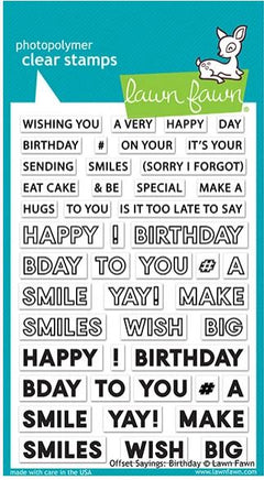 These clear stamps are just cute! They feature cute little images and/or nice phrases. They are easy to use, simply peel off of the sheet, apply to an acrylic block and press into ink and stamp away. This package contains Offset Sayings- Birthday: a set of 46 stamps on a 4x6 inch backing sheet. WARNING: Choking Hazard. Not suitable for children under 3 years. Made in USA.