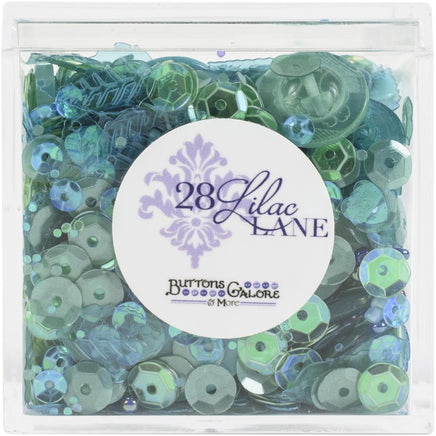 Tiny buttons, sequins and seed bead mix. 75 grams packed in a clear acrylic cube box