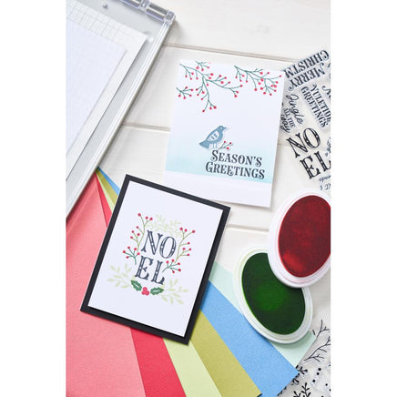 This stamp set is perfect for seasonal greetings with 13 different stamps included, featuring popular phrases such as Happy Holidays, Merry Christmas and Let It Snow! Youll be reaching for these stamps year after year and are perfect for cardmaking, gift wrap and beyond! This package contains 13 stamps.