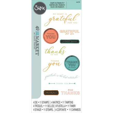 Elevate your gratitude with our 11 Clear Stamps Set paired with the 4 Framelits Die Set Thankful Sentiments by 49 and Market. Designed to express appreciation in every stroke, this set is your go-to for adding heartfelt messages to your projects. With a versatile range of sentiments, from 'Thank You' to 'Grateful' and beyond, these stamps empower you to convey your thanks with style and sincerity. Each stamp is designed for crisp, clear impressions, ensuring your sentiments are beautifully showcased on paper, cardstock, and more. This package contains 11 stamps and 4 dies.
