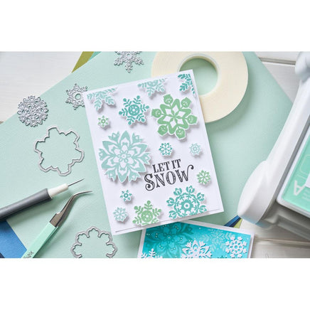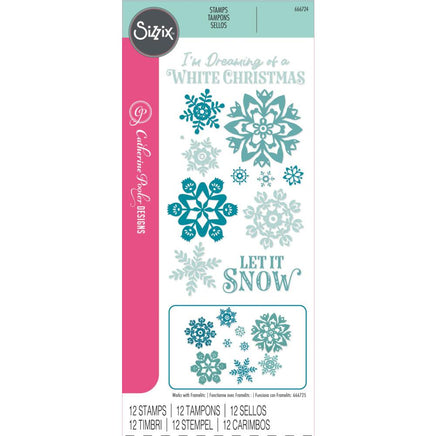 The perfect stamp set to use year after year! This snowflake set includes snowflakes of different shapes and styles plus two phrases ideal for the festive time of year. The stamps work with the Sizzix® Framelits® Die Set 15PK White Christmas #2 (666725) so you can cut out your stamped snowflakes for adding to all your seasonal crafting! This package contains 12 stamps.