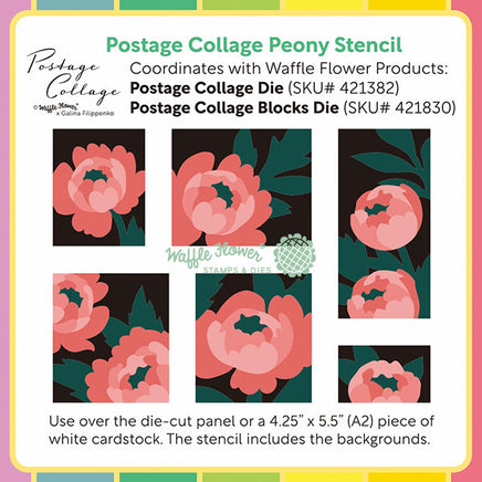 Postage Collage Peony - Stencil