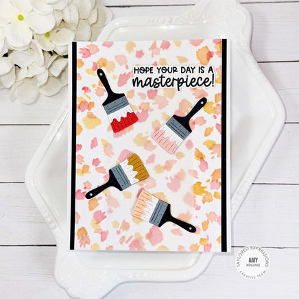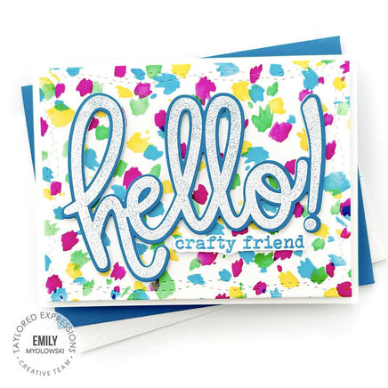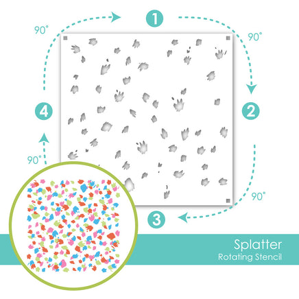 Make a colorful splash of art with the Rotating Splatter Stencil! This playful design mimics paint splatters and makes it easy to create vibrant, layered backgrounds. Start by applying your first ink color, then rotate the stencil 90 degrees to add a second color. Repeat until your splatter masterpiece is complete! Use it with various mediums like TE Premium Ink, TE Happy Medium, Simon Hurley Astro Paste or Lunar Paste, and more.