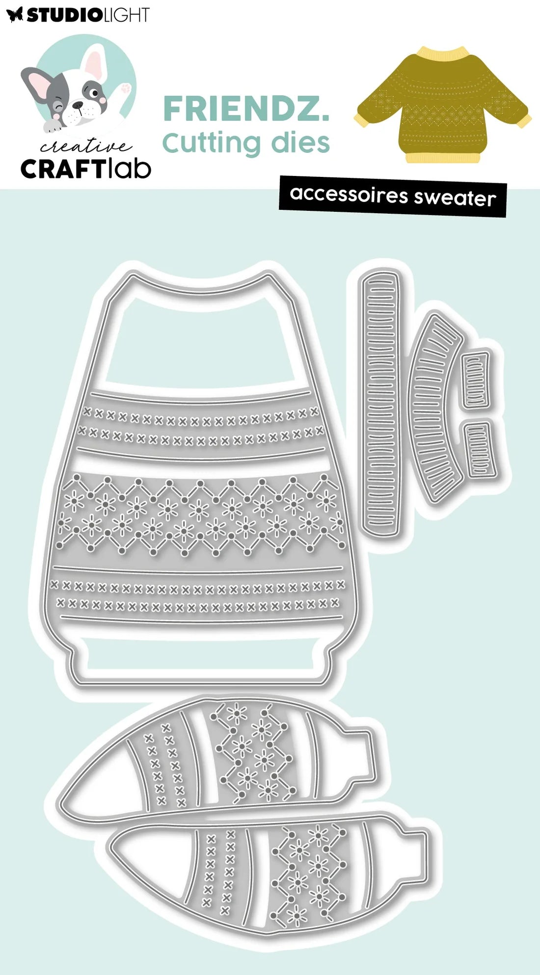This die set includes everything you need to create a cozy sweater. Perfect for Autumn, Winter and Christmas themed cards and paper craft projects. Part of the Creative Craft Lab Friendz collection.