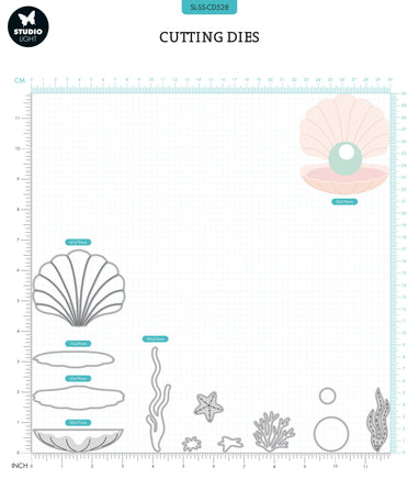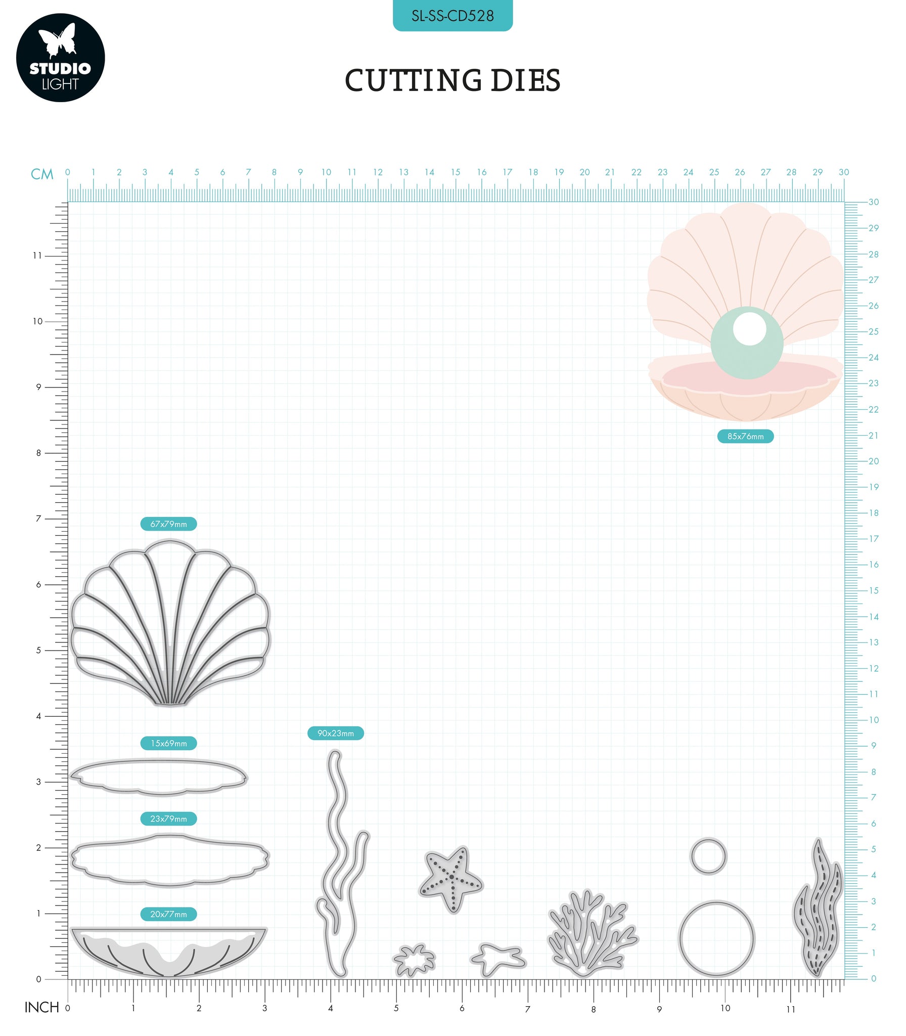 This cutting die set is perfect for scene making. This set includes a clamshell, seaweed plus extra elements which will make great additions to cards, scrapbook layouts and journal pages. 12 pcs