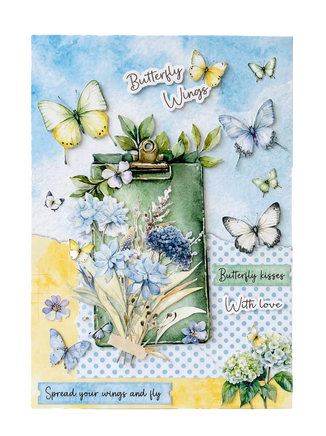 This Butterflies die-cut paper pad includes 28 sheets of butterfly and spring themed backgrounds and elements. The set includes 2x 8 background papers, 2x 2 A6 cards and 2x 4 die-cut sheets of embellishments.  Printed on heavyweight cardstock 170gsm. Acid and lignin free.