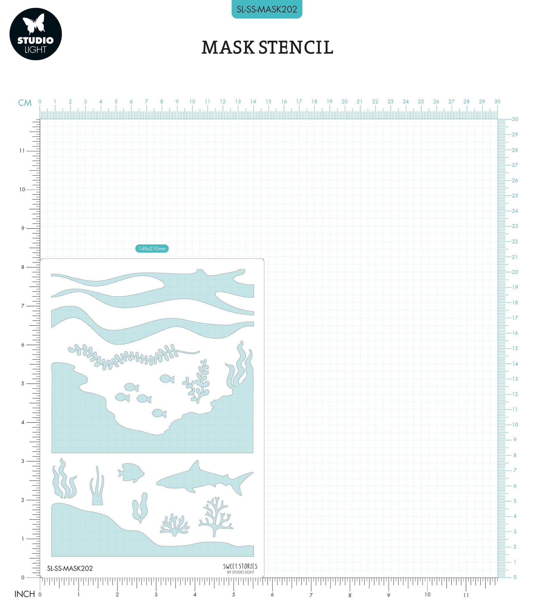 Use this mask with your favourite inks, dies, paints and pastes to create a sea scenery background for your cards, mixed media projects, journals and more.
