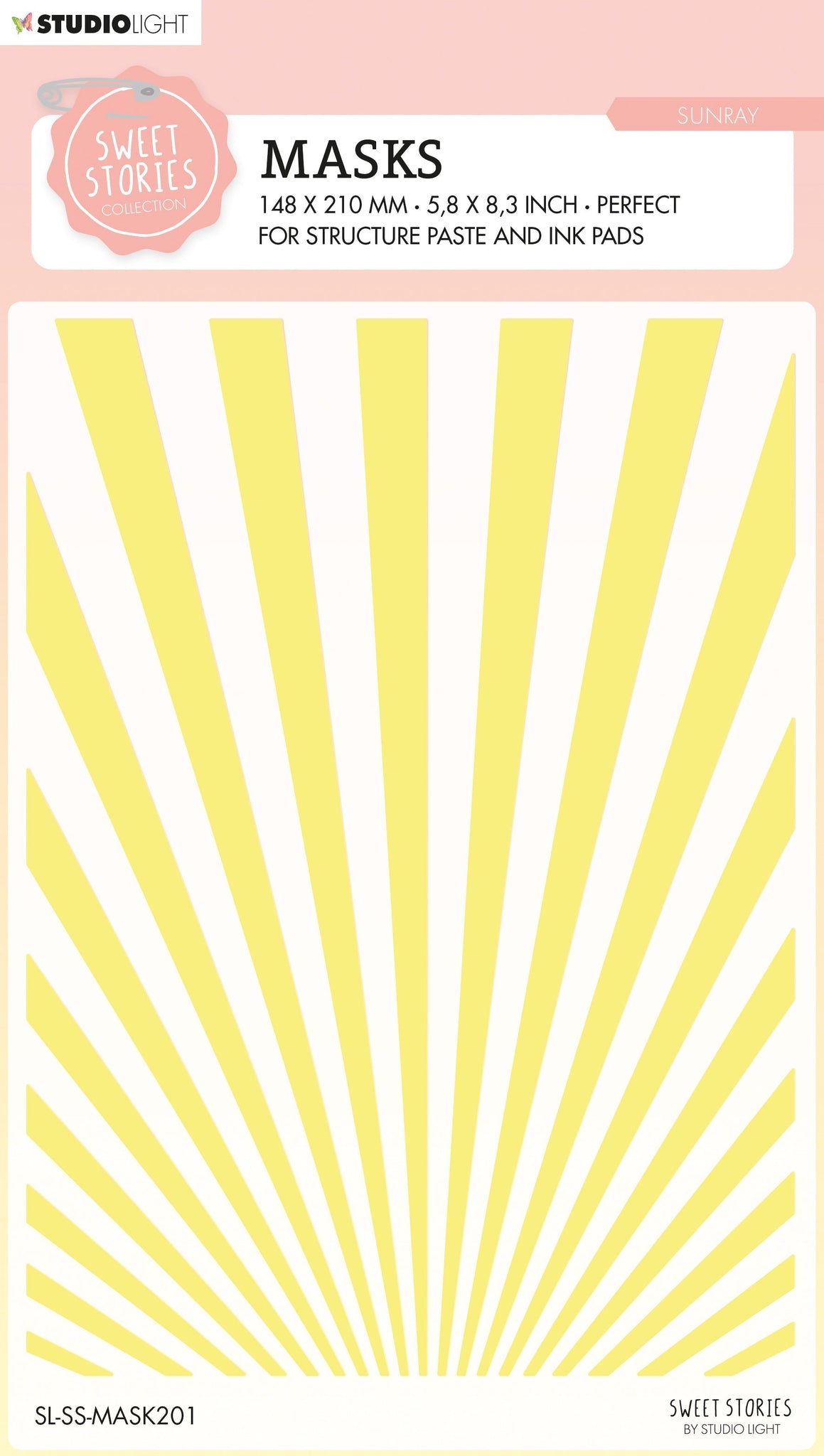 Use this mask with your favourite inks, dies, paints and pastes to create a sunbeam background for your cards, mixed media projects, journals and more.