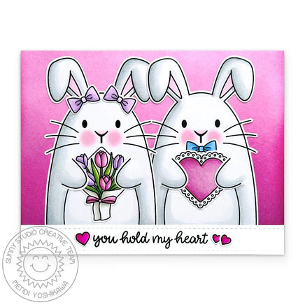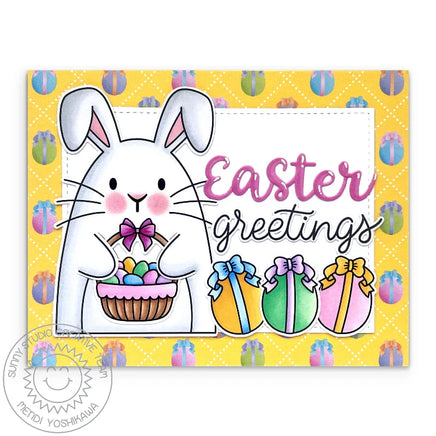 Hop into a world of whimsy with our Big Bunny Clear Stamps – where cuteness meets customization in the most adorable way possible! Switch things up for different holidays with the accompanying tulip bouquet, love letters, Easter basket, or oversized egg for him (or her) to hold. Then create the perfect finishing touch using the large script "greeting" word together with the smaller mix-and-match words.
